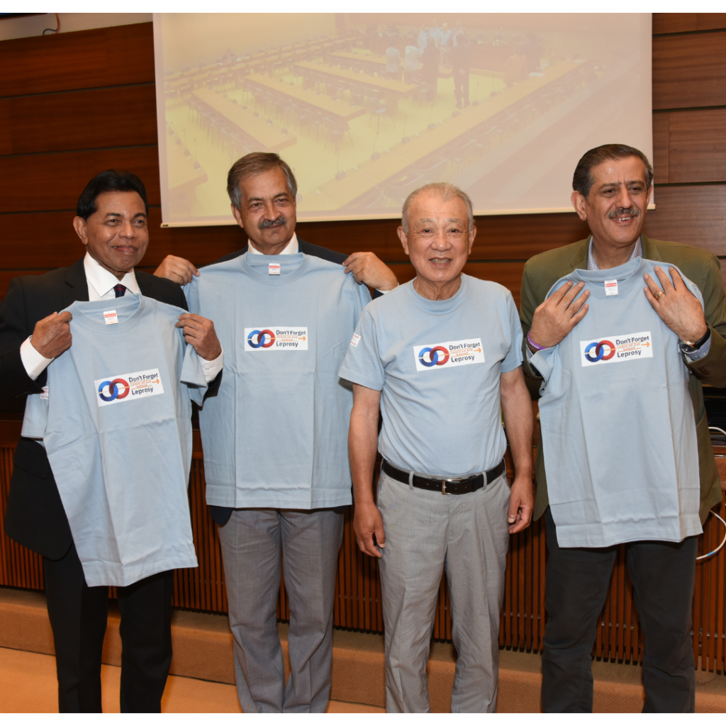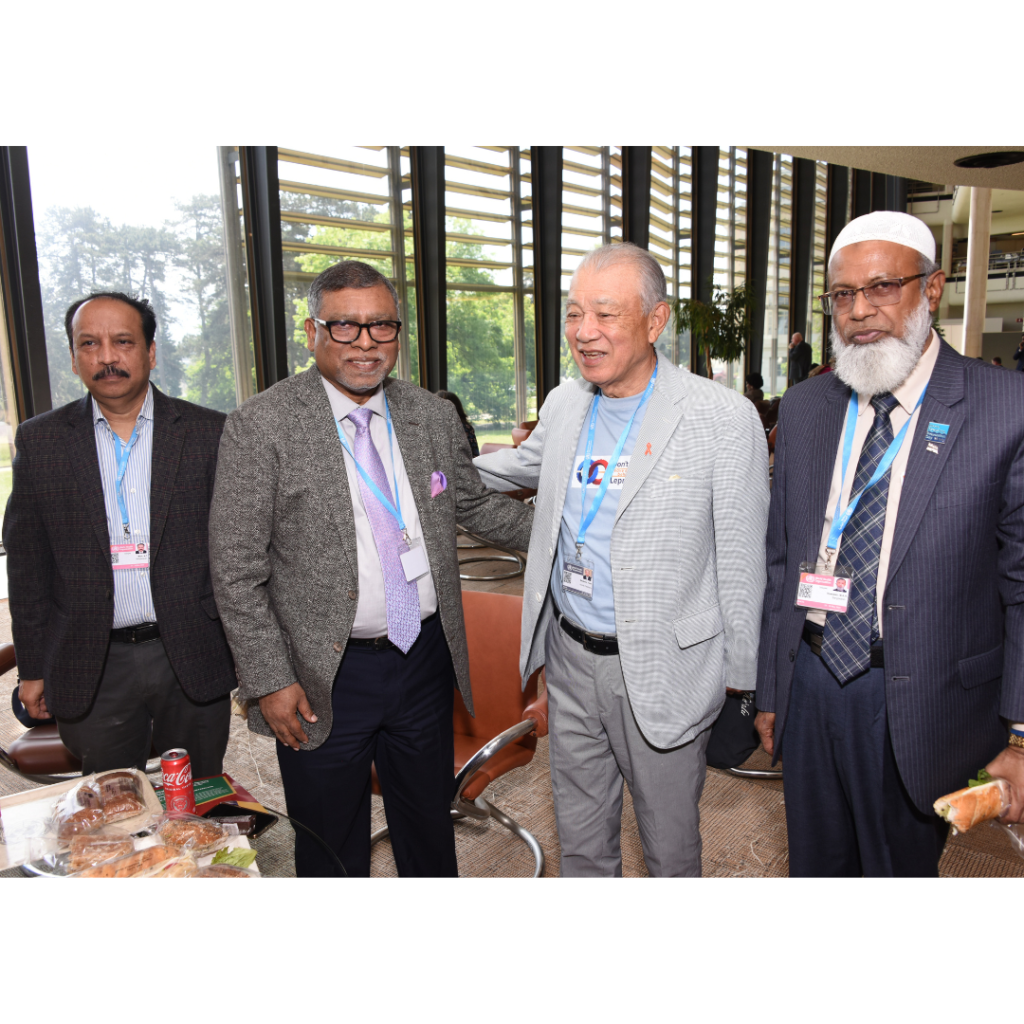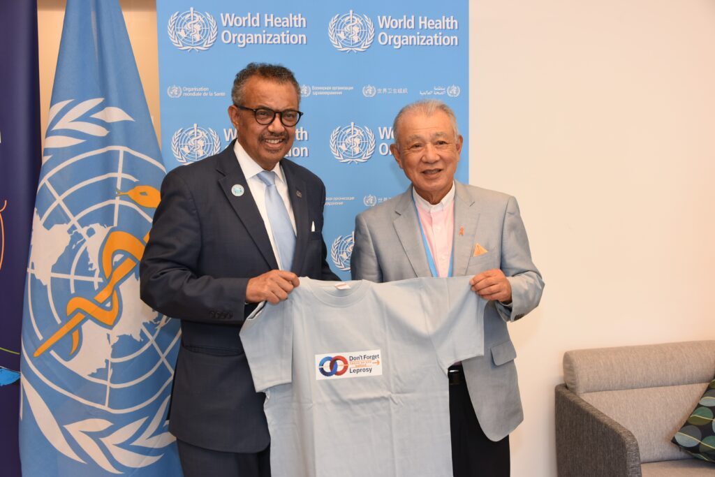 WHO Goodwill Ambassador for Leprosy Elimination Yohei Sasakawa traveled to Geneva, Switzerland, to meet with health leaders from around the world at the 76th World Health Assembly. He listened as leaders described the leprosy situation in their countries, and he asked for their cooperation in achieving a world without the disease and related problems.
